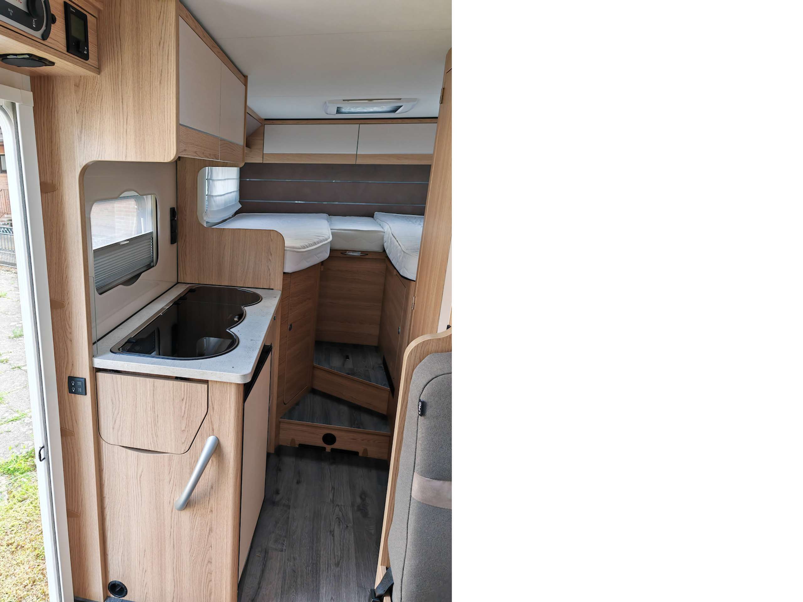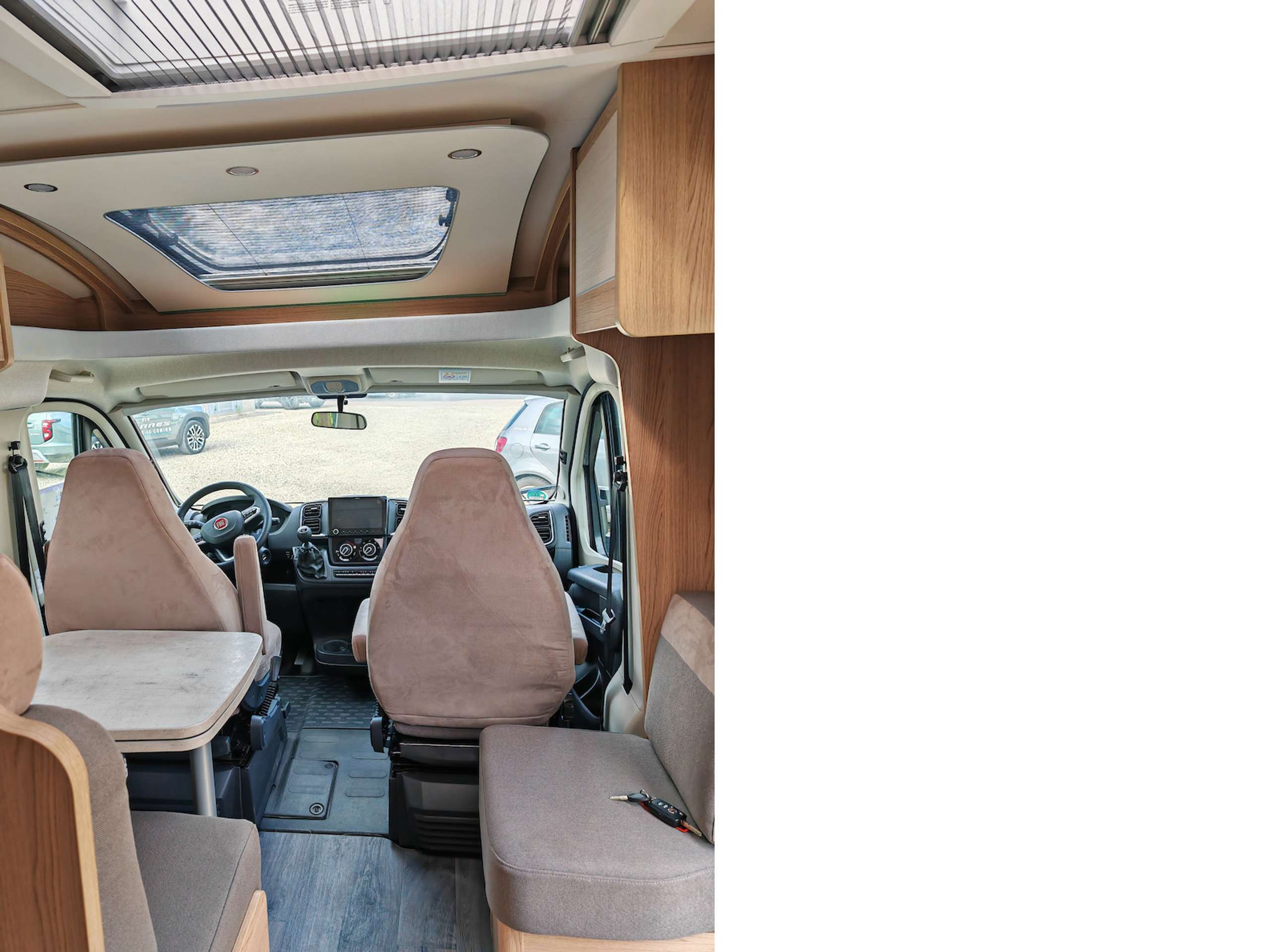 6-Gang Getriebe, Stoff, Hebe-/Kipp Dachfenster, HU/AU neu, Insektenschutztür, Euro6, Fiat-Chassis, Landesversion Deutschland, grüne Umweltplakette (4), 1. Hand, Außentemperaturanzeige, Farbmonitor für Navigationssystem, Kühlschrank mit Gefrierfach, 2 Schlafplätze, Rußpartikelfilter, Frontantrieb, 4 gurtges. Sitzplätze, Inspektion neu, Gebrauchtfahrzeug, Diesel, Frei ab 15.10.2025